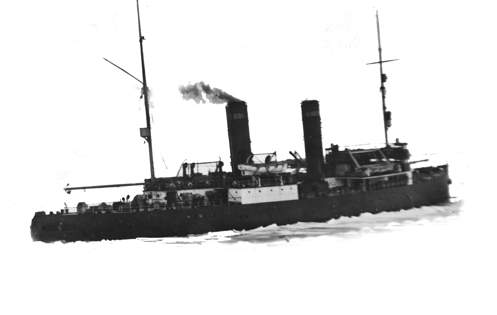 25 августа немецкий крейсер вышел в район юго-западного архипелага Норденшельда. Около полудня немцы заметили советский ледокольный пароход «Александр Сибиряков». Встретив «Сибирякова», немцы пошли по хитрость: подняли флаг США и повернулись к пароходу носом, чтобы их было сложнее опознать ...