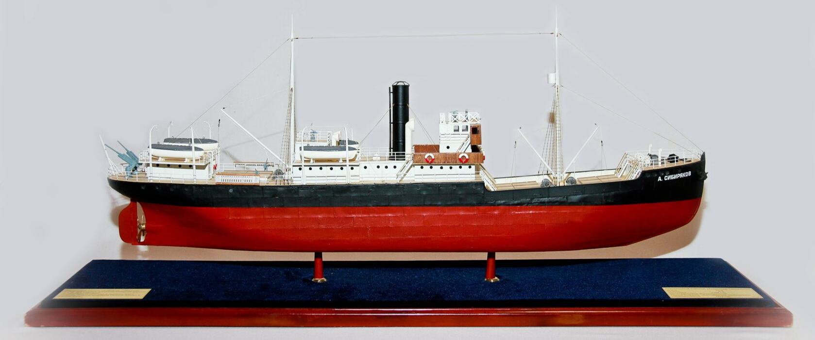 Модель ледокольного парохода «Александр Сибиряков». Из фондов Ямало-Ненецкого окружного музейно-выставочного комплекса имени И.С. Шемановского. Фото Т.Т. Шульцевой. 2022
